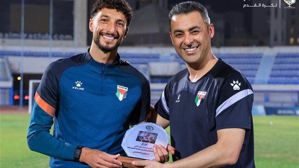 منتخب فلسطين يكرم وسام أبو علي بعد التتويج بالدوري المصري