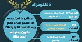 وأشار الإنفوجراف إلى أن المساحات المنزرعة بمحصول القمح هذا الموسم على مستوى المحافظة بلغت نحو 307 آلاف فدان، في حين تبلغ الطاقة الاستيعابية لمواقع التخزين بالمحافظة نحو 496 ألف طن، مما يعزز من قدرة المحافظة على استقبال وتخزين الكميات المستهدفة بكفاءة عالية.