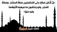 صلاة العشاء هي الكاشفة للمنافقين الذين يتثاقلون عن أدائها، ووقتها هو أطول وقت في جميع الصلوات؛ لأنها تبدأ من مغيب الشفق الأحمر للشمس، حتى طلوع الفجر الصادق، وهو وقت لا يقل عن 8 ساعات.